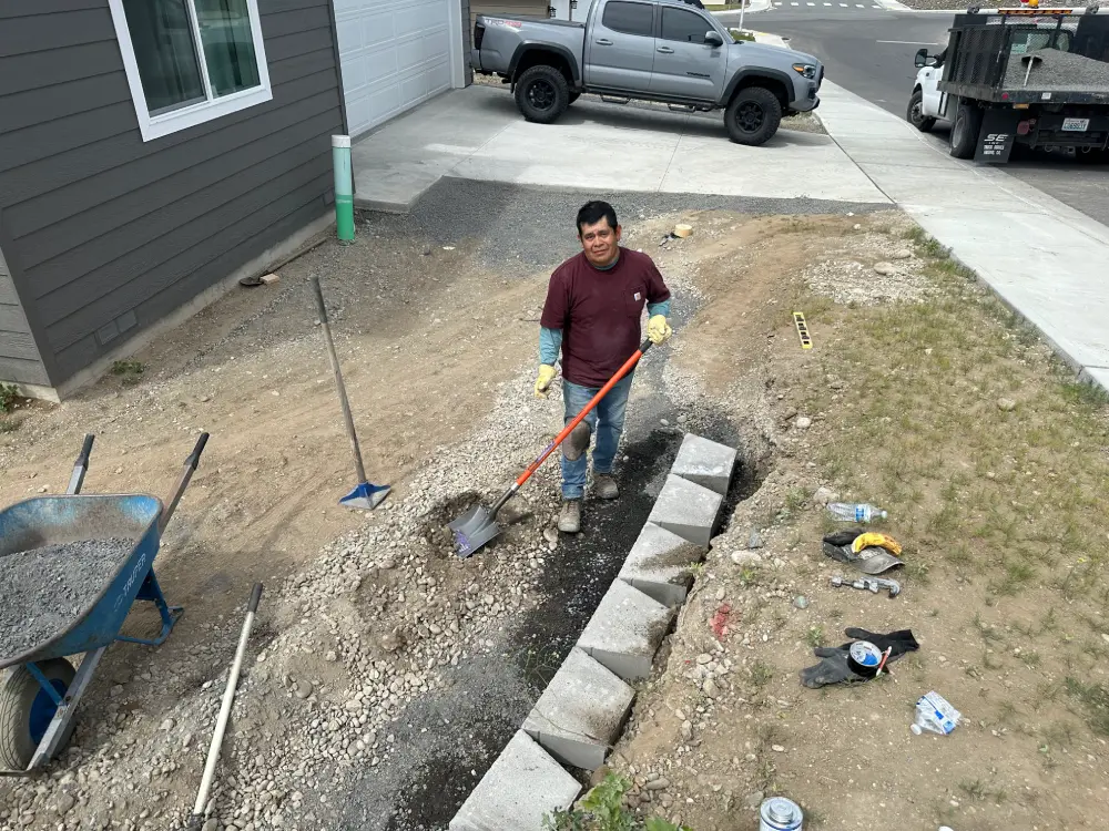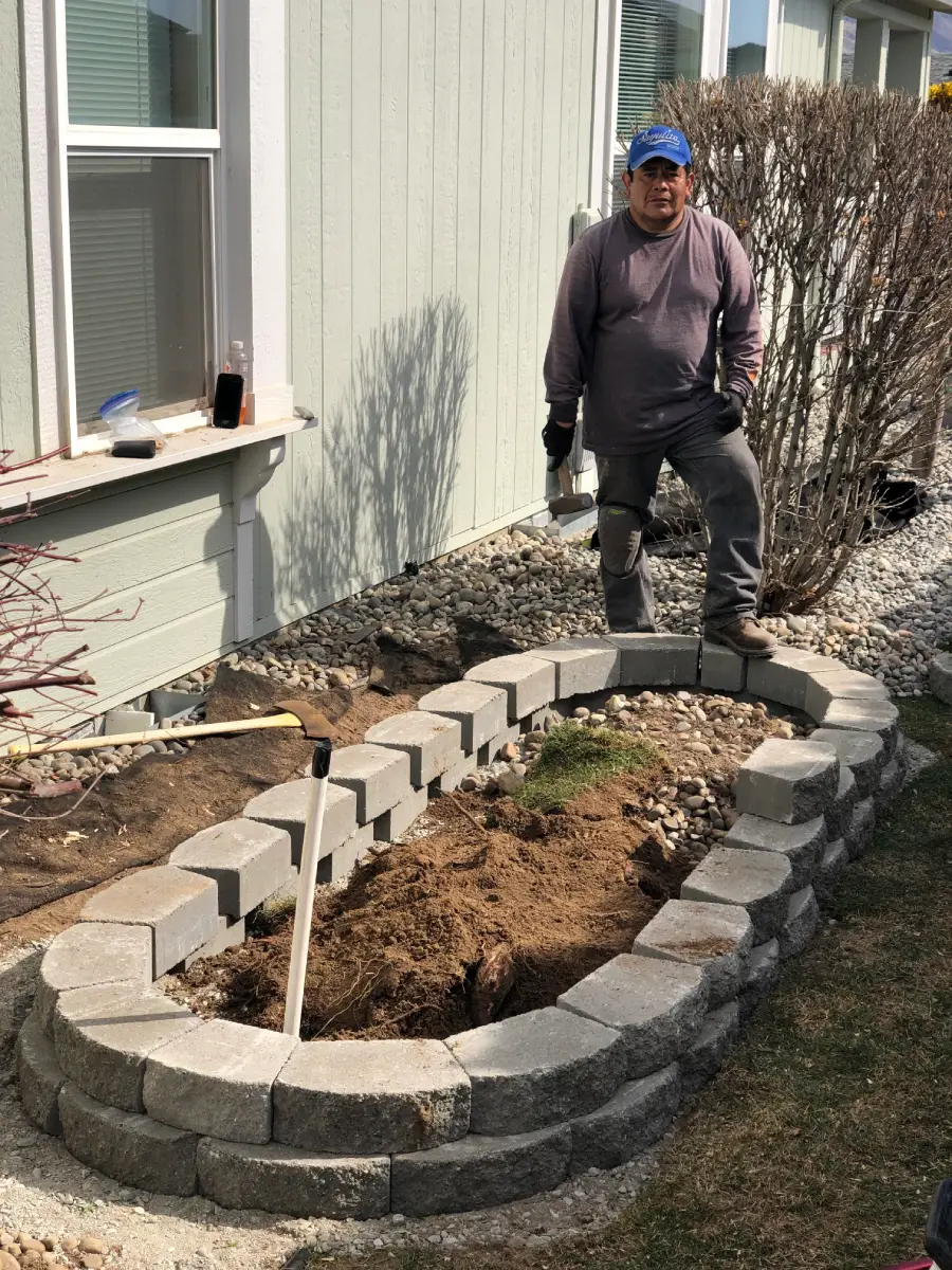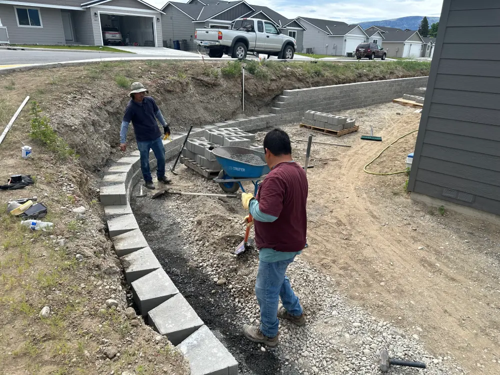 We build retaining walls with concrete blocks (no stones or boulders). Retaining walls can be a great way to create terraces in your landscape or create raised flower beds. We can also build paver walkways or patios. Pavers are great alternatives to flat concrete and gives a stylistic touch to your landscape. (e.g., patios, walkways, retaining walls)
